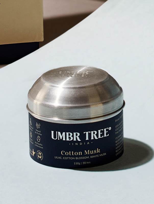 Vogue Collection double-wick fine home fragrance candles are made using our proprietary 100% natural wax blend of the highest quality soy, coconut and palm wax. Our blend also contains Beeswax for its unrivaled natural air purification properties. Topped with lead-free cotton wicks and premium fine fragrance oils to create an eco-friendly non-toxic non-polluting clean burn that is pure and intensely fragrant. This elegant home perfume candle is set in a stylish aluminum container custom designed by Umbr Tree, crowned with a distinctive dome lid that keeps wax dust free when not in use. Perfect for taking your favourite home fragrance with you on your travels or for the cozy areas of your home. You’ll love using the container for jewellery, coins or precious knick-knacks long after the candle is finished.