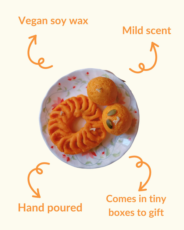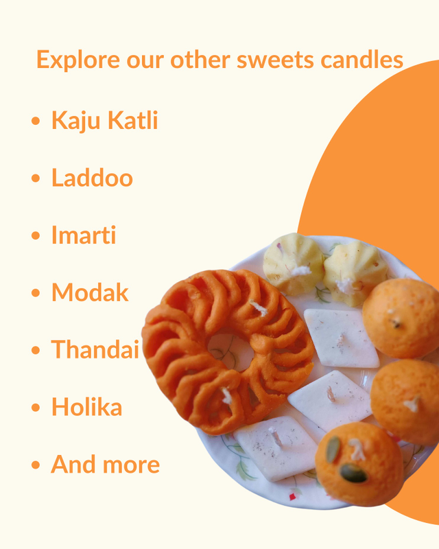 Safety Tips: Do not the candle unattended, keep it out of reach of children and pets, and place it on a heat-resistant surface. Jalebi imarti candles available, perfect for gifting.